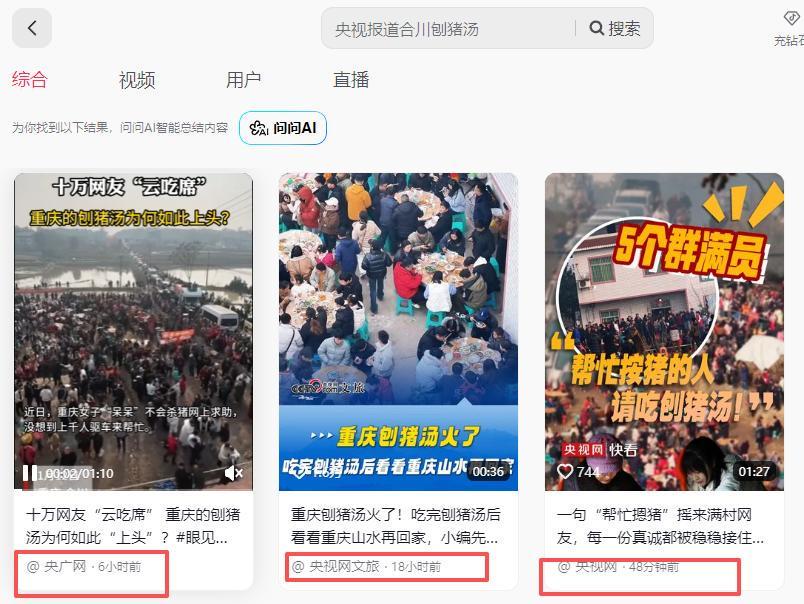 但这只是开始,连续两天“合川呆呆”“刨猪汤”“杀年猪”等相关话题占据热搜榜前三位,截至1月12日晚,仅#合川呆呆刨猪汤#一个话题的播放量就突破8000万。