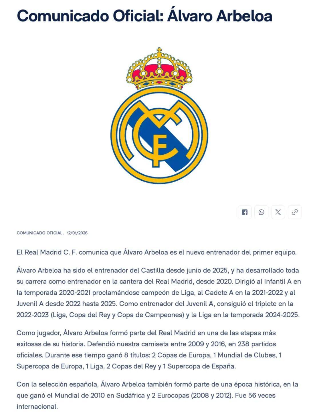 皇马在官方公告中写道:“作为皇家马德里的传奇人物,哈维·阿隆索将永远得到全体马德里球迷的爱戴和钦佩。他在任何时候都完美诠释了我们俱乐部的价值观。皇家马德里永远是他的家。俱乐部衷心感谢哈维·阿隆索及其整个技术团队在这段时间的付出与奉献,并祝他们在人生新阶段好运。”